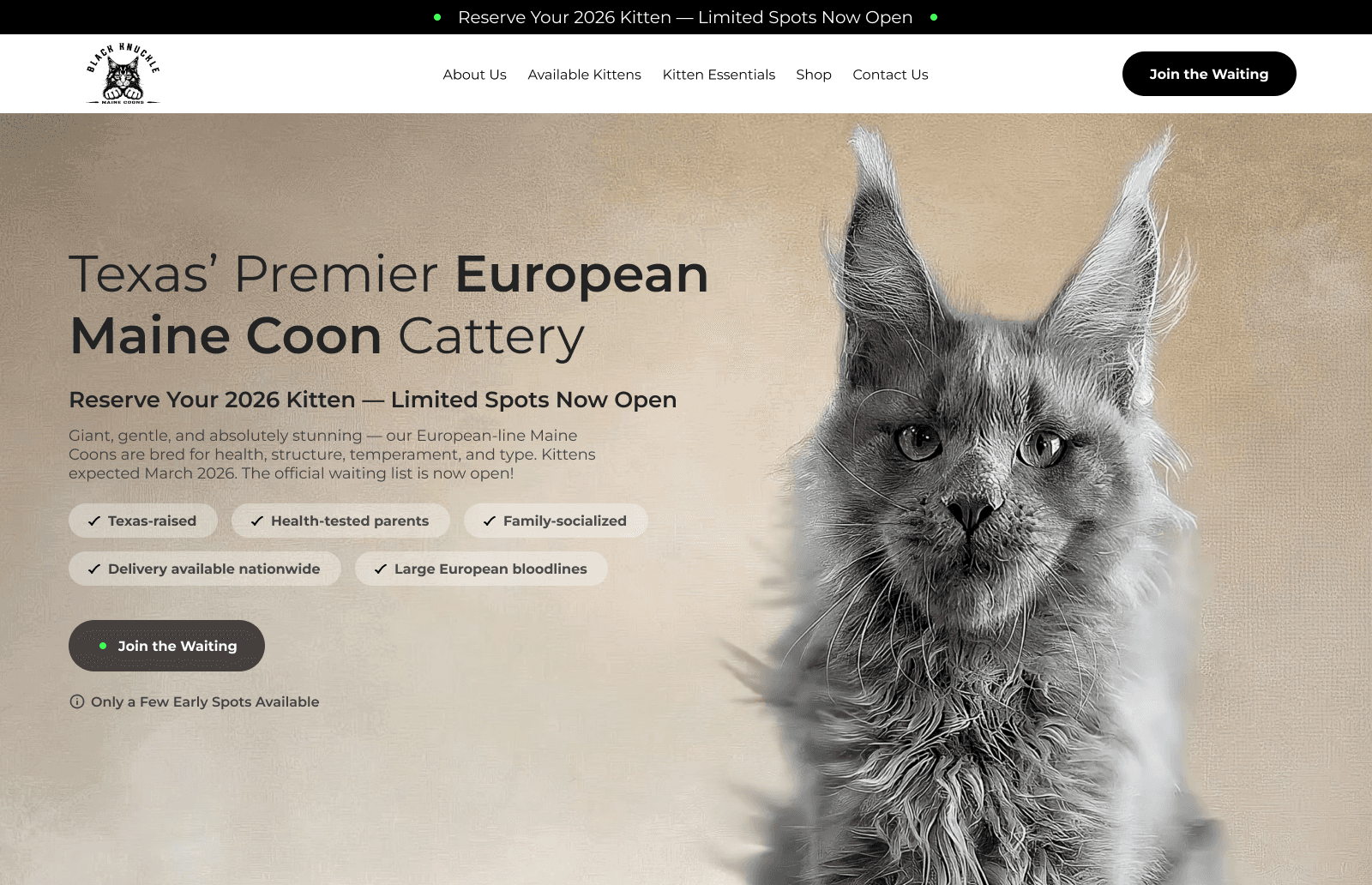 The existing website struggled to convert visitors into inquiries or buyers. Users had difficulty tracking available kittens, the ordering process was unclear, and there were no real-time updates on availability. Visual hierarchy and product presentation were weak, making it harder for users to understand the value and uniqueness of each kitten.