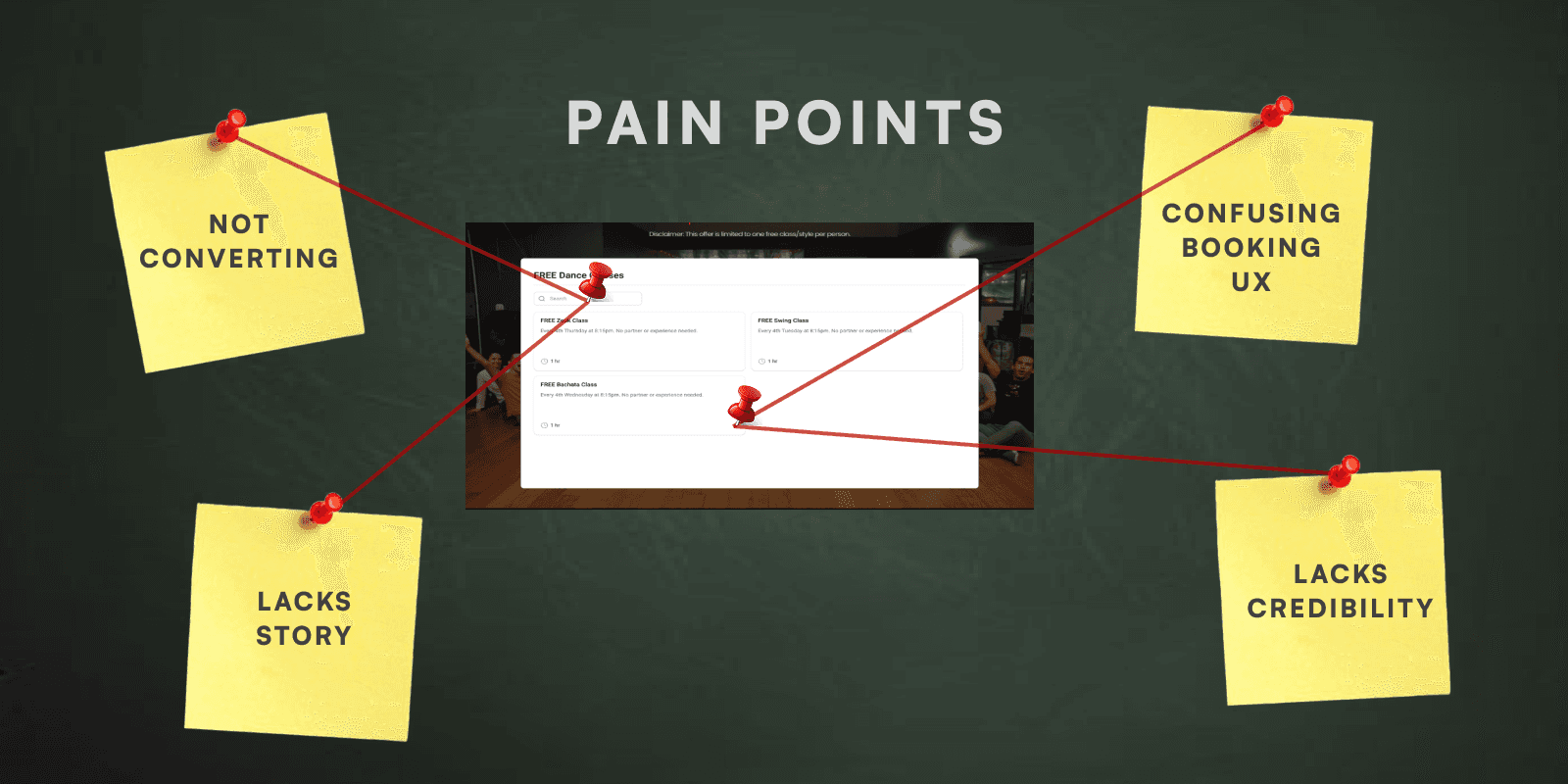 The landing page for the dance classes was not converting. Visitors lacked trust, the page failed to communicate value, and the layout didn’t guide users toward taking action. As a result, sign-ups were consistently low.